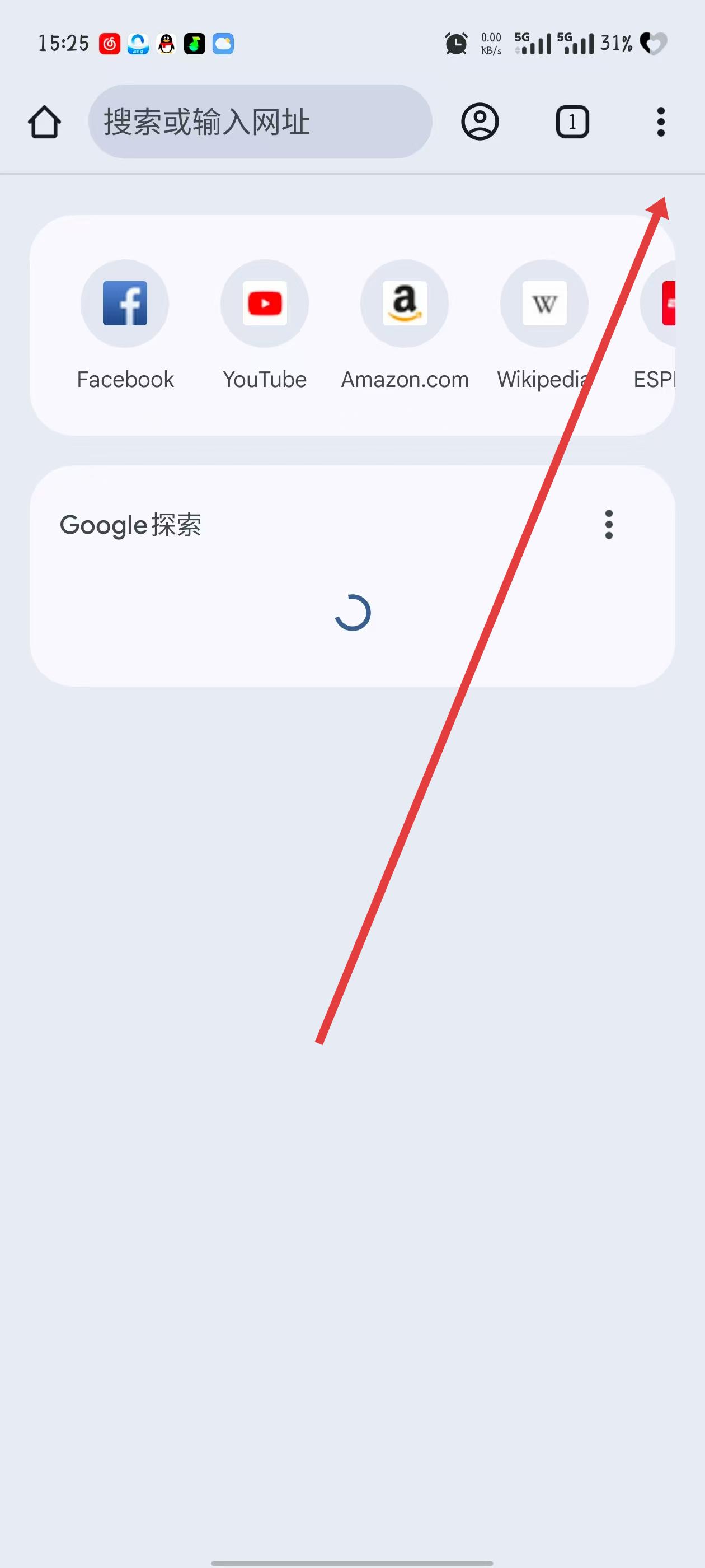 1、打開谷歌瀏覽器,點(diǎn)擊右上角三點(diǎn)圖標(biāo)。