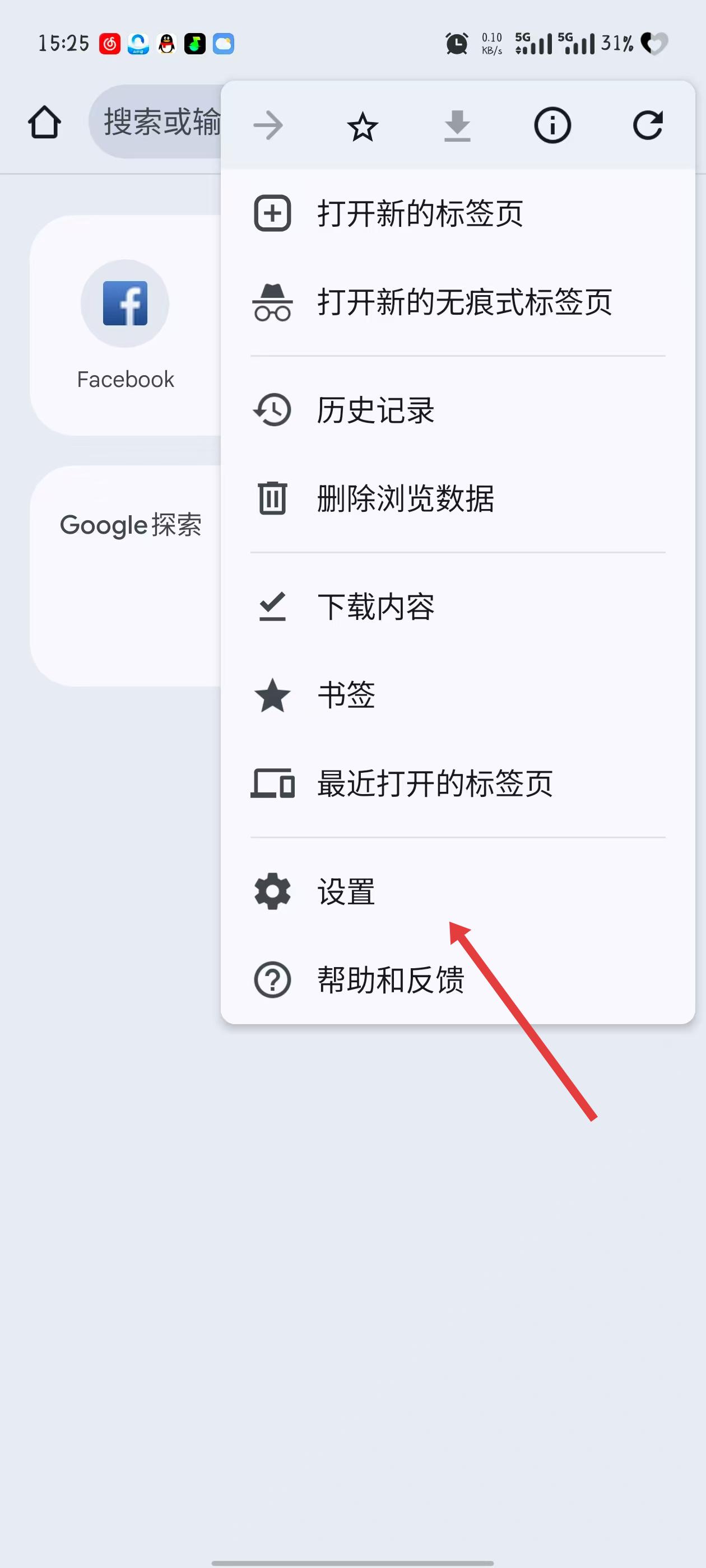 2、在彈出菜單中,選擇設(shè)置選項(xiàng)進(jìn)入設(shè)置頁面。
