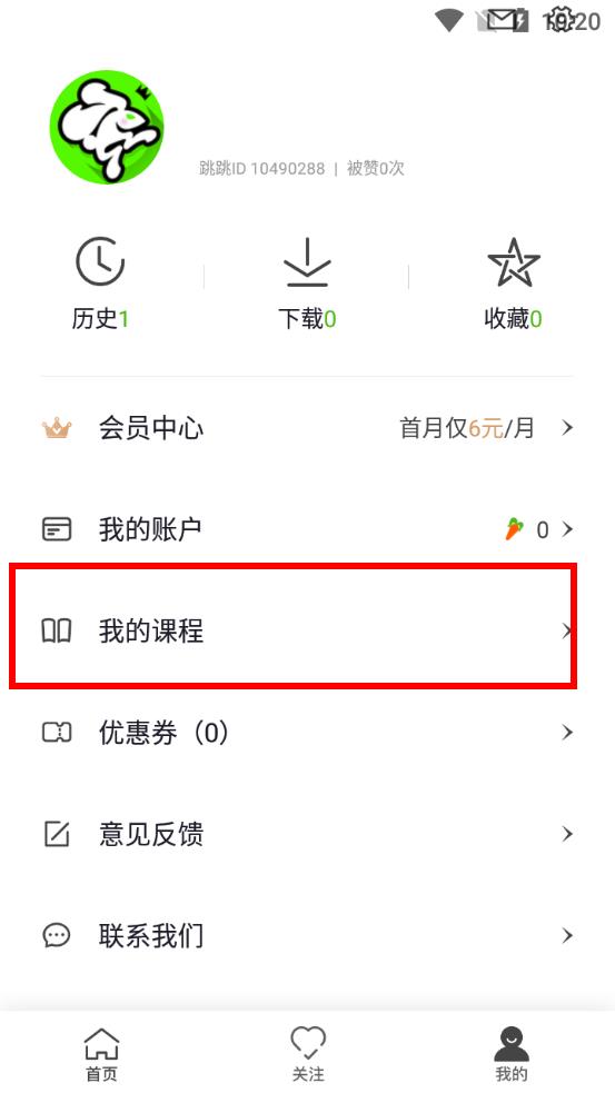 2、在個(gè)人界面找到,我的課程選項(xiàng)并點(diǎn)擊進(jìn)入。
