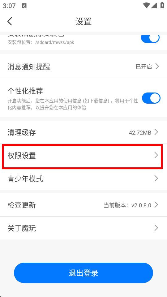 2、在設(shè)置頁面中,找到并點(diǎn)擊權(quán)限設(shè)置選項(xiàng)。