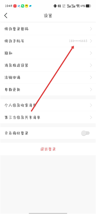 2、在設(shè)置頁面點(diǎn)擊修改手機(jī)號選項(xiàng),進(jìn)入修改手機(jī)號頁面。