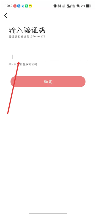 4、在輸入驗(yàn)證碼頁面輸入收到的驗(yàn)證碼,點(diǎn)擊確定按鈕即可。