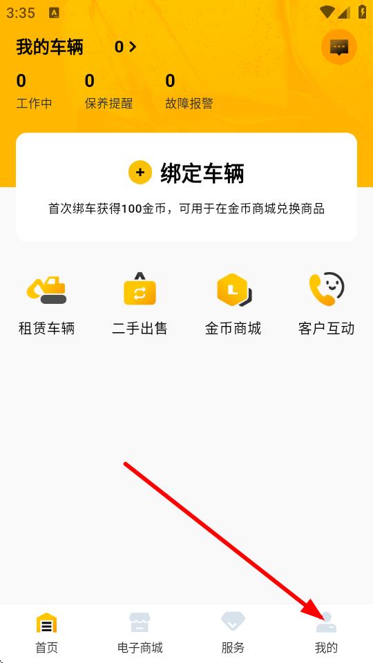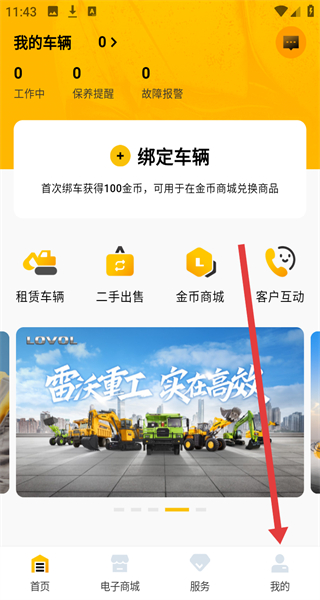 1、打開智能雷沃App,點(diǎn)擊底部導(dǎo)航欄中的我的選項(xiàng),進(jìn)入個(gè)人頁面。
