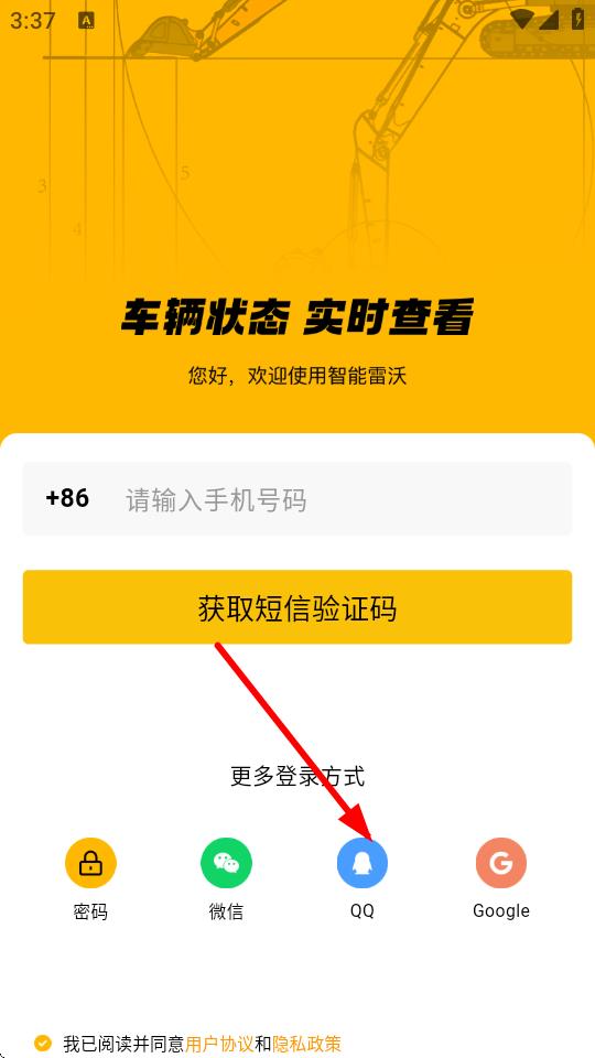 4、在QQ授權(quán)頁面,點(diǎn)擊同意按鈕,完成使用QQ登錄智能雷沃的操作。