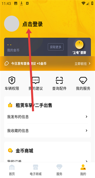 2、在個(gè)人頁面中,點(diǎn)擊點(diǎn)擊登錄區(qū)域,進(jìn)入登錄界面。
