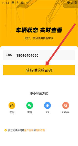3、登錄頁面輸入好手機(jī)號(hào)后,點(diǎn)擊“獲取短信驗(yàn)證碼”。