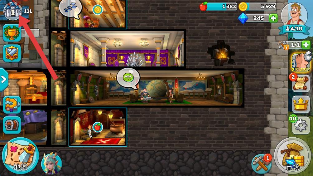 1、打開(kāi)喧鬧的城堡游戲,進(jìn)入游戲主界面,點(diǎn)擊頭像。