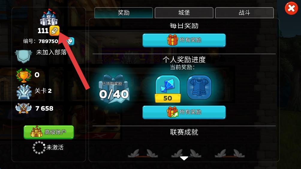2、點(diǎn)擊游戲主界面左上角顯示編號(hào)和等級(jí)處的鉛筆圖標(biāo)。