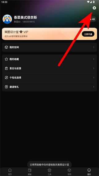 1、打開美圖設計室應用,點擊底部的我的選項,進入個人頁面后點擊右上角的設置圖標。