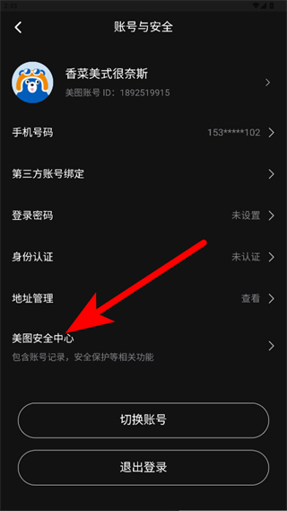 進入美圖安全中心頁面后點擊注銷賬號,按照提示完成美圖設計室賬號的注銷操作。