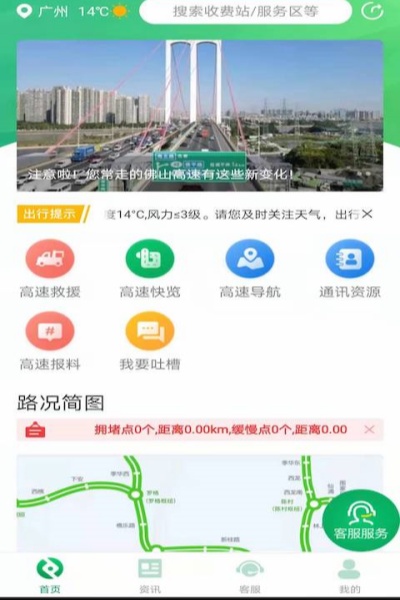 佛山易行app是一款提供高速公路路況查詢服務(wù)的手機(jī)軟件。提供了實(shí)時(shí)路況查詢、路線導(dǎo)航查詢以及行程管理等服務(wù)功能。讓車主輕松駕車出行,為你提供精準(zhǔn)的etc站點(diǎn)的信息以及服務(wù)區(qū)的信息,還能辦理相應(yīng)的服務(wù),需要的用戶趕快來下載使用吧。