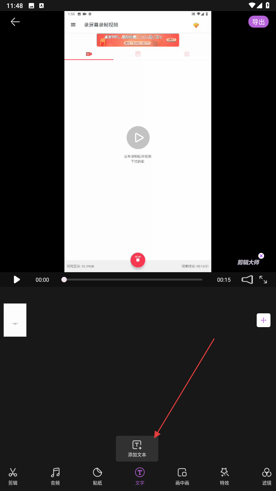 3、在導(dǎo)入的頁面內(nèi),點(diǎn)擊添加文本的功能按鈕。
