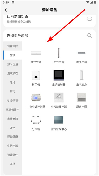 2、在添加設(shè)備頁(yè)面選擇需要添加的設(shè)備,進(jìn)入掃碼添加設(shè)備頁(yè)面。