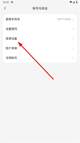 3、進(jìn)入賬號(hào)與安全頁(yè)面后,點(diǎn)擊登錄設(shè)備選項(xiàng)。