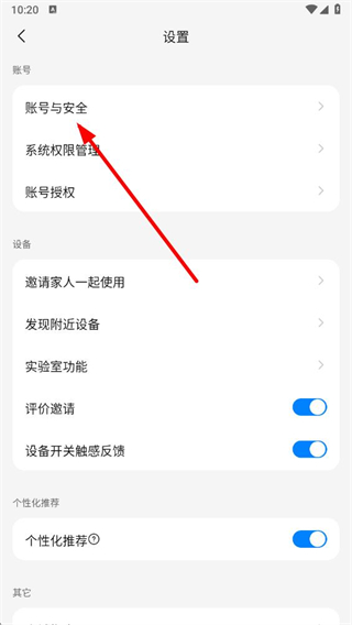 2、在設(shè)置頁(yè)面中,點(diǎn)擊賬號(hào)與安全選項(xiàng)。