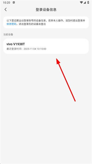 4、在登錄設(shè)備信息頁(yè)面即可查看登錄設(shè)備及最近登錄時(shí)間。