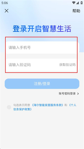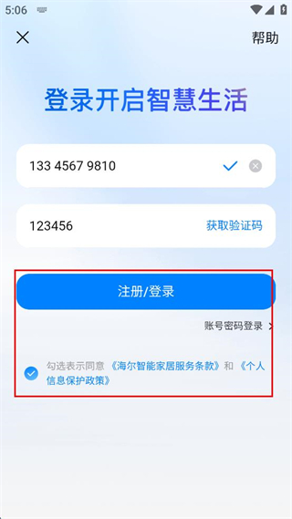 4、勾選同意相關(guān)條款,完成輸入和勾選后點(diǎn)擊注冊(cè)/登錄按鈕。
