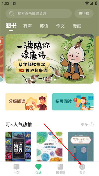 1、打開掌閱課外書,點(diǎn)擊底部導(dǎo)航欄我的。