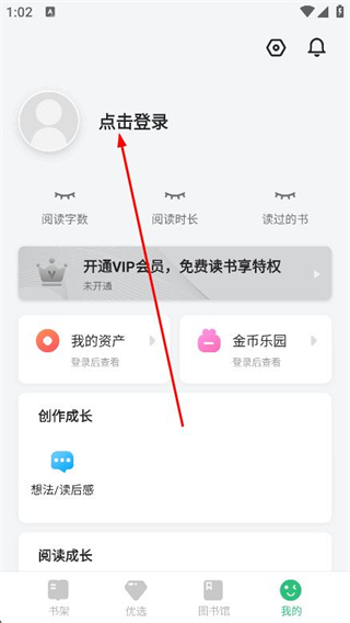 2、在個(gè)人頁面中,點(diǎn)擊上方點(diǎn)擊登錄選項(xiàng)。