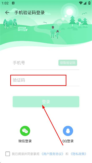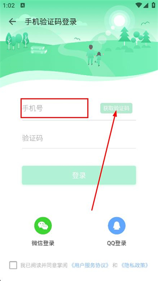 3、在登錄頁面,輸入手機(jī)號(hào)并獲取驗(yàn)證碼。
