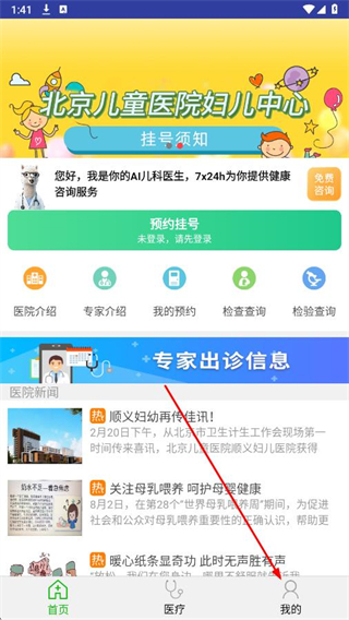 1、打開(kāi)順義區(qū)婦幼保健院APP,點(diǎn)擊導(dǎo)航欄中的我的。