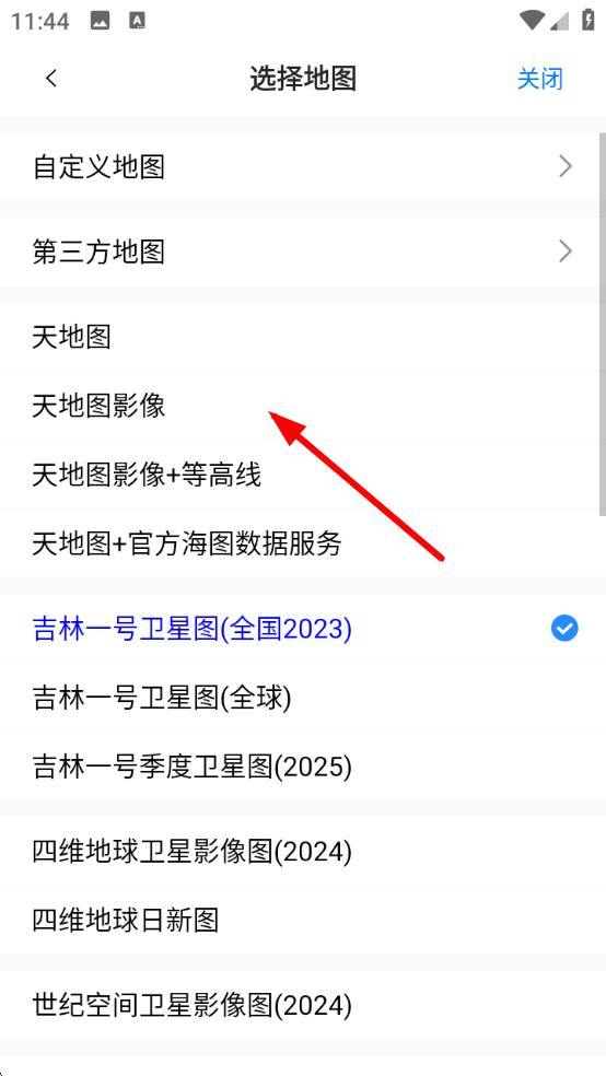 2、在選擇地圖界面中,找到并選擇天地圖影像選項(xiàng),切換地圖模式。