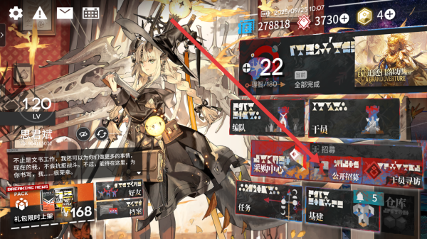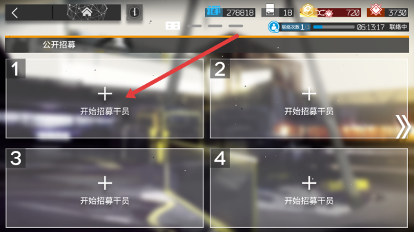 1、在明日方舟首頁(yè)中,可以點(diǎn)擊公開(kāi)招募選項(xiàng),進(jìn)入招募干員。