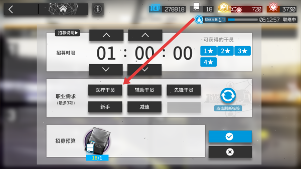 3、可以點(diǎn)擊選擇干員的職業(yè)詞條,進(jìn)行選擇招募干員的范圍。
