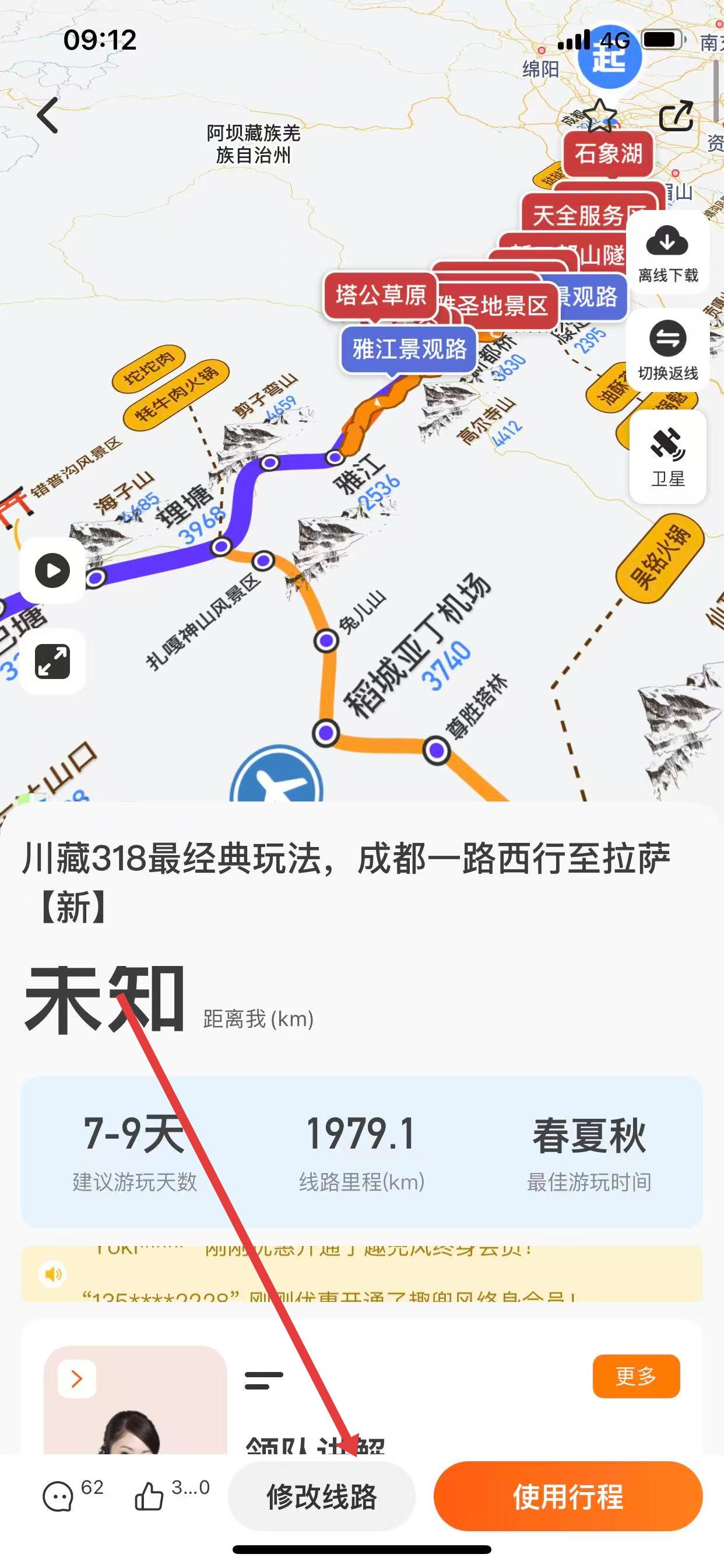2、在他人線路詳情頁面,找到修改線路按鈕并點(diǎn)擊。