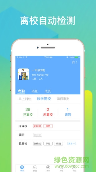 智安校園手機版是以安全為核心的家校服務APP,具有到??记?,危險區(qū)域提醒,離校提醒等功能,結合城市物聯(lián)網(wǎng)安全網(wǎng)絡,為在校學生打造安全的學習環(huán)境,給家長提供貼心的服務!家長也可通過這個APP進行訪客預約。還能實現(xiàn)校內(nèi)電子巡更、設施管理、隱患排查、維護報修、師生考勤、安全信息推送等功能。快來綠色資源網(wǎng)下載使用吧。
