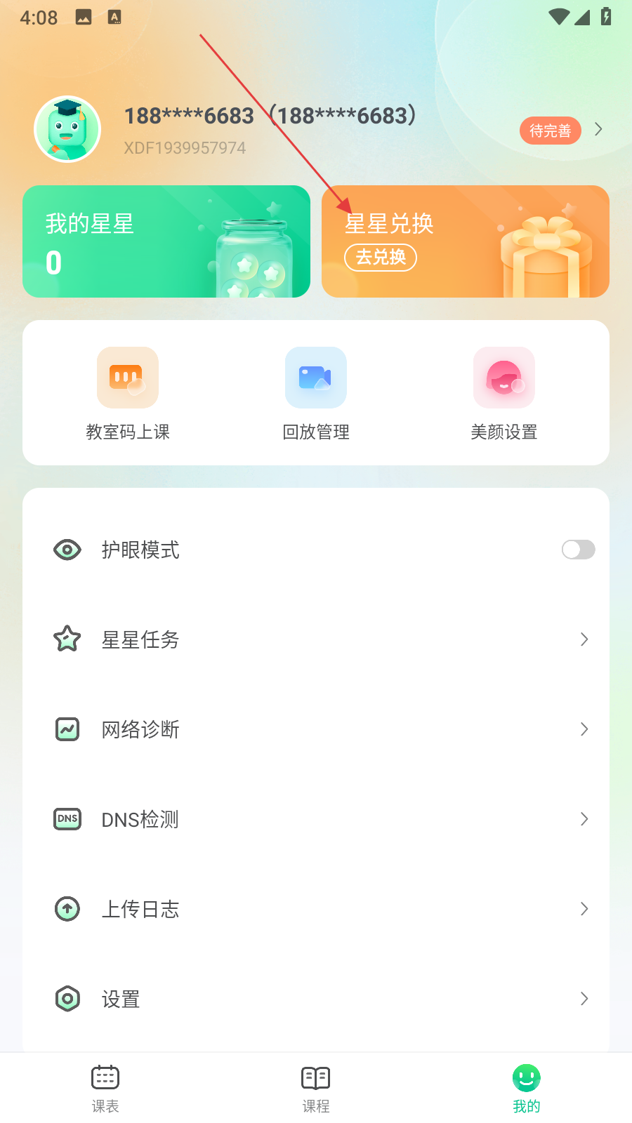 2、在個人中心頁面,點擊星星兌換選項,進入星星兌換界面。