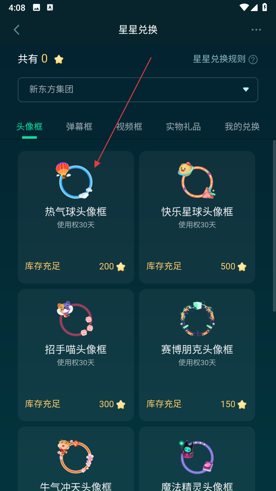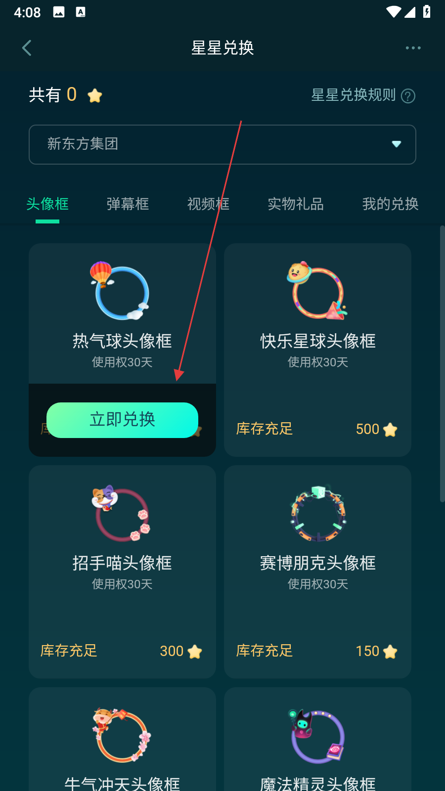 3、在星星兌換界面,選擇想要兌換的禮物,以熱氣球頭像框為例,點擊該禮物。