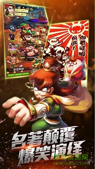 爆笑大亂斗是一款三國題材搞笑大亂斗卡牌手游,游戲畫面非常的輕松活潑,玩法也非常之幽默詼諧,為緊張的三國爭霸戰(zhàn)帶來了一絲放松,喜愛的朋友趕快到綠色資源網(wǎng)下載體驗吧!
