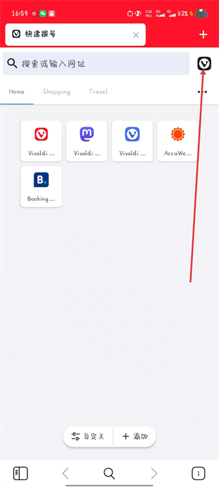 1、打開Vivaldi瀏覽器,點(diǎn)擊右上角的圖標(biāo)。