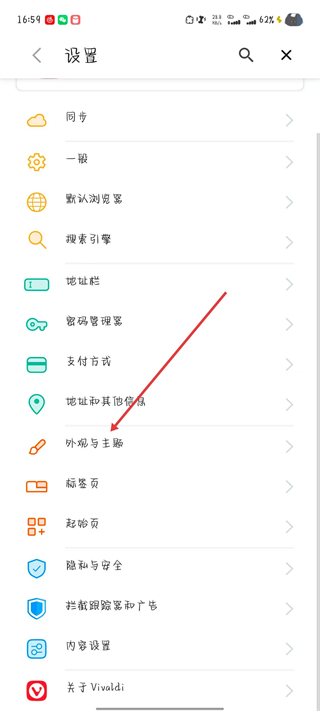 3、進(jìn)入設(shè)置頁面后,點(diǎn)擊外觀與主題選項(xiàng)。