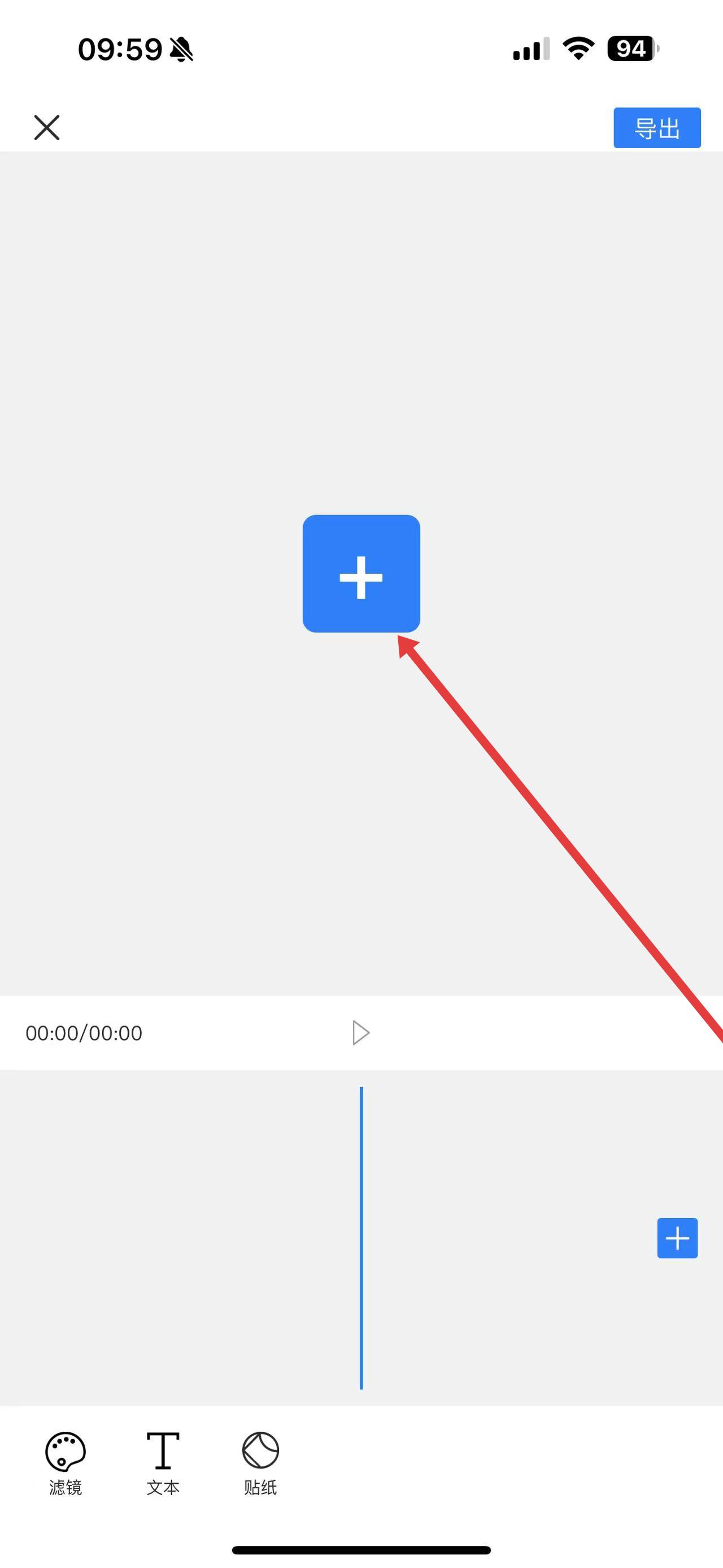 2、進(jìn)入視頻編輯界面后,點(diǎn)擊藍(lán)色加號(hào)按鈕,選擇要編輯的視頻素材。