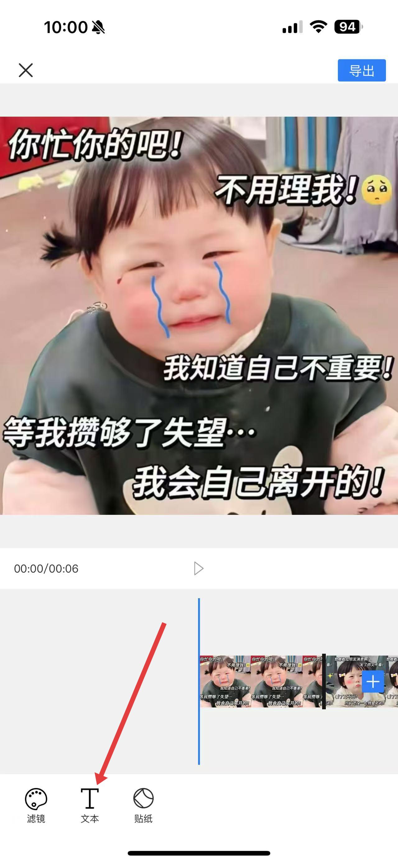 4、在視頻編輯頁(yè)面下方,點(diǎn)擊文本按鈕,進(jìn)入文字添加界面,就可以在視頻中添加文字內(nèi)容了。
