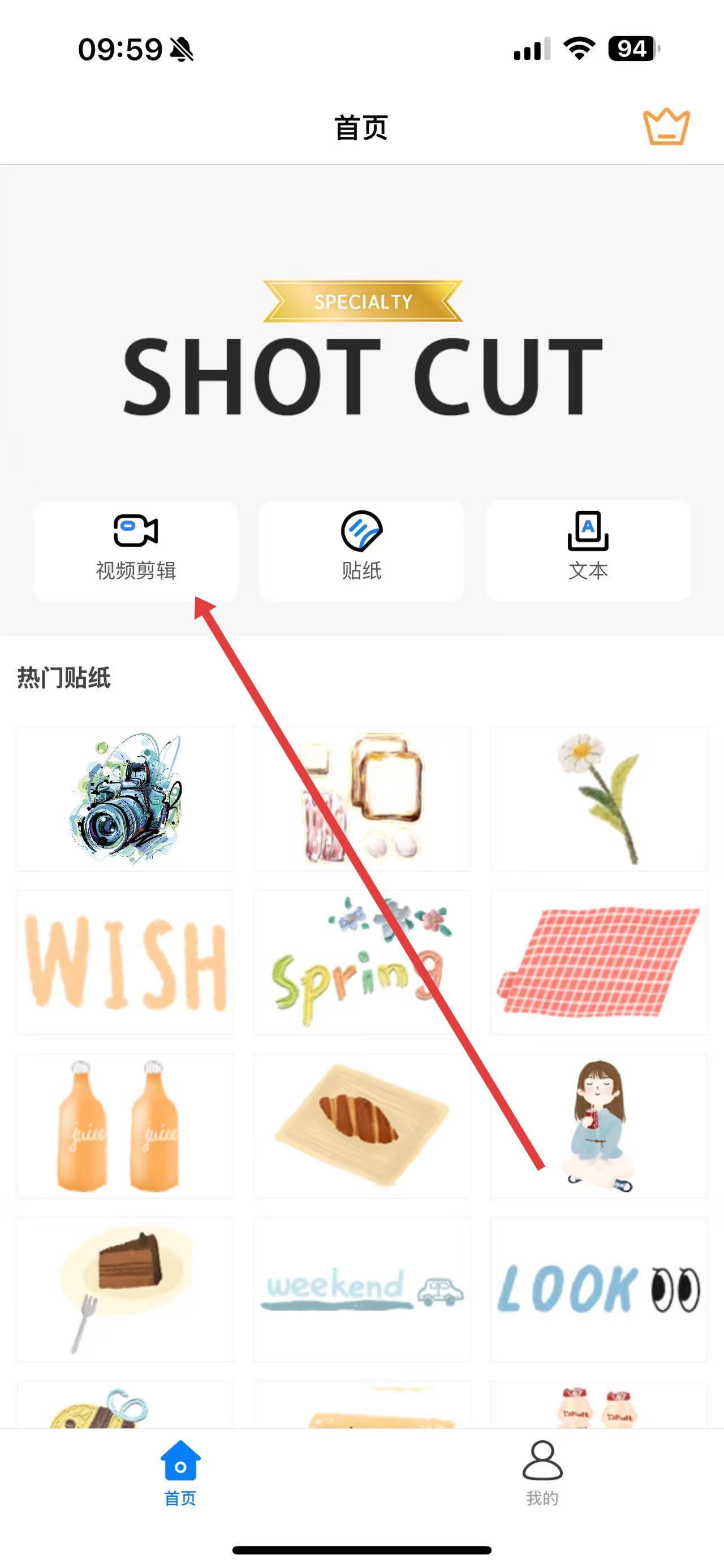 1、打開(kāi)清爽視頻編輯APP,在首頁(yè)點(diǎn)擊視頻剪輯選項(xiàng)。