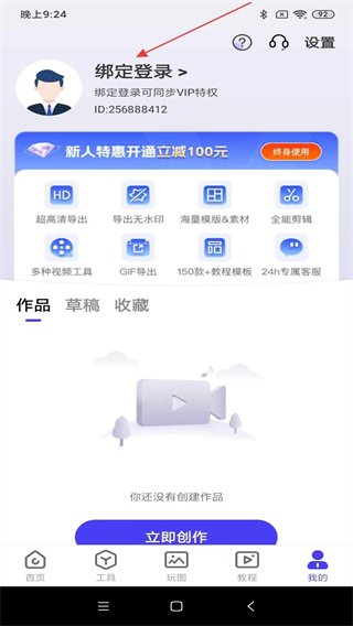 2、進(jìn)入個(gè)人中心的頁(yè)面內(nèi),點(diǎn)擊上方綁定登錄的按鈕。
