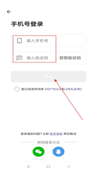 3、輸入手機(jī)號(hào)、驗(yàn)證碼后,再點(diǎn)擊登錄的按鈕即可完成。