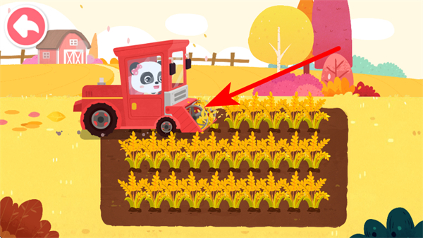 3、進(jìn)入農(nóng)事的環(huán)節(jié)后,需要操作農(nóng)機(jī)如紅色收割機(jī)收割作物如玉米,體驗(yàn)季節(jié)對(duì)應(yīng)的農(nóng)事操作,學(xué)習(xí)四季農(nóng)業(yè)生產(chǎn)知識(shí)。