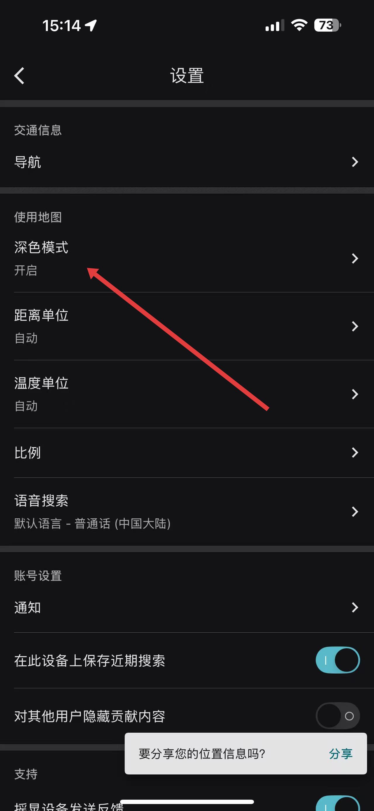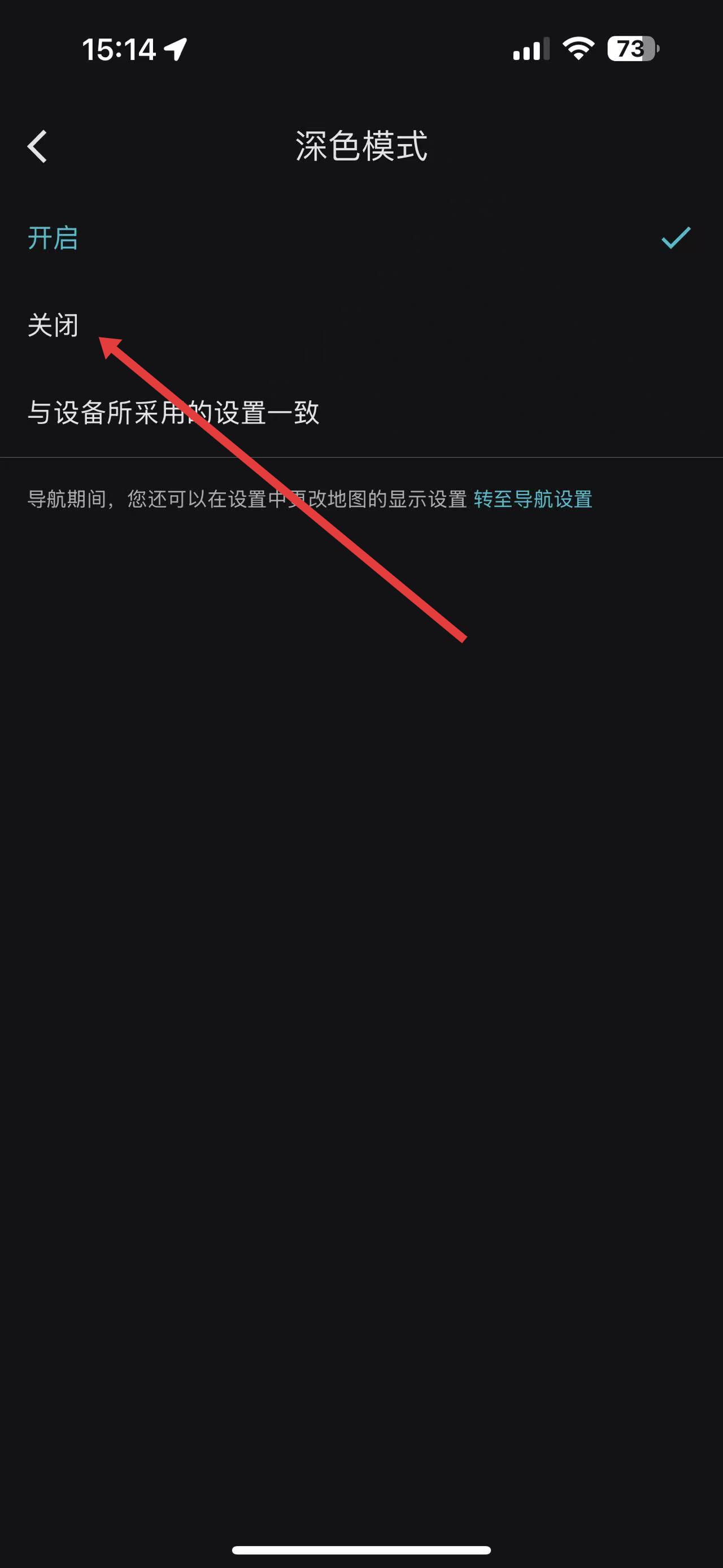 3、在深色模式設置界面中,點擊關閉選項,即可關閉谷歌地圖的深色模式。