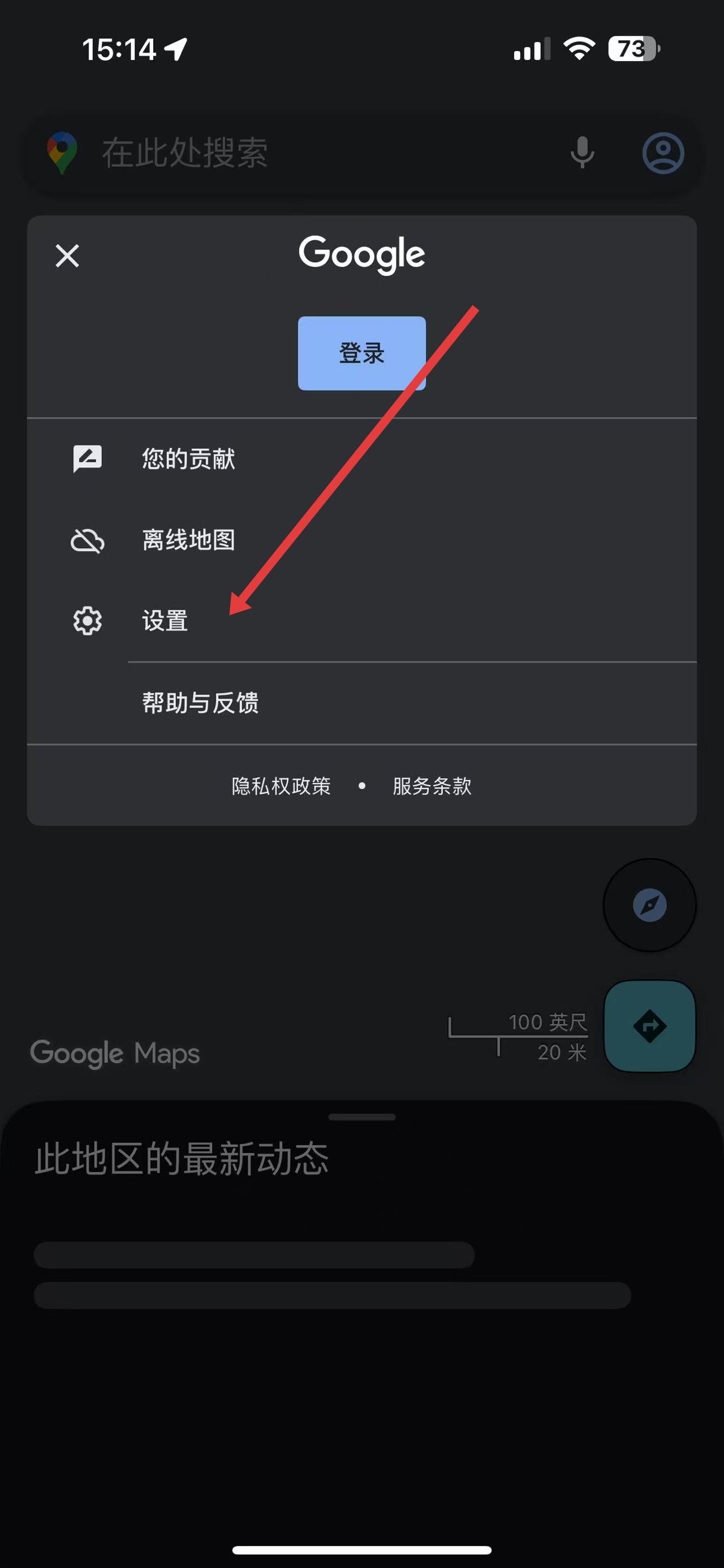1、打開谷歌地圖應用,點擊左上角區(qū)域,在彈出菜單里點擊設置選項進入設置頁面。