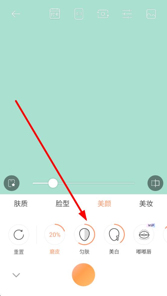 3、在美顏設(shè)置里,找到勻膚功能并點擊,通過調(diào)整讓膚色更均勻,搭配磨皮、美白等其他美顏選項,優(yōu)化拍照效果。