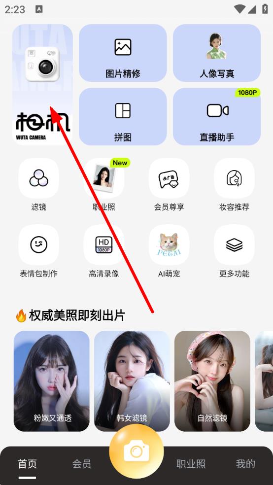 1、打開無他相機(jī),點擊首頁左上角相機(jī)圖標(biāo),進(jìn)入拍攝界面開啟拍照準(zhǔn)備。