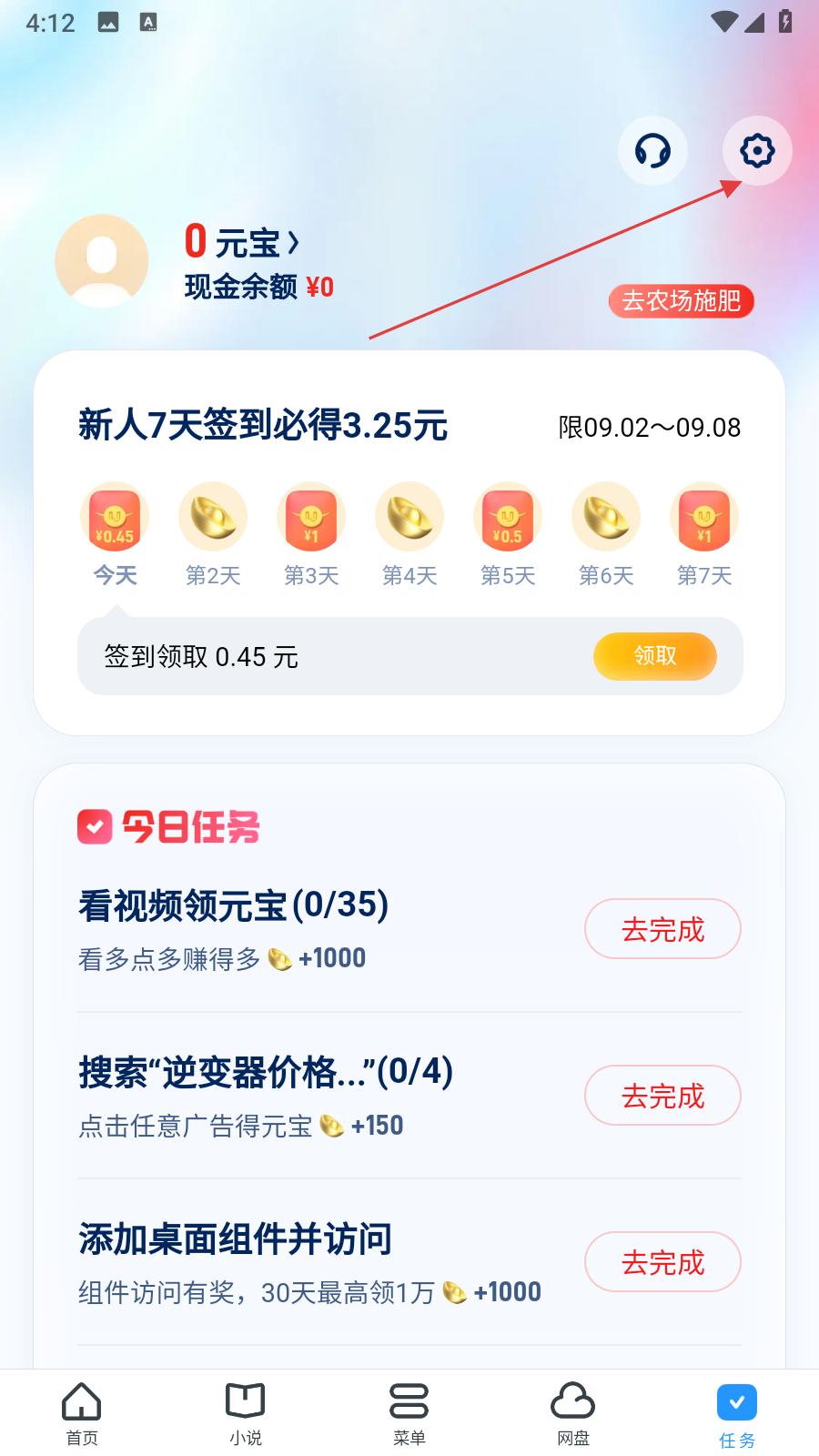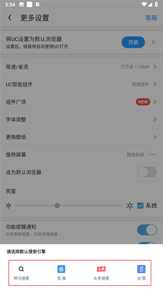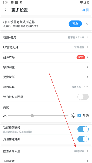 1、打開UC瀏覽器極速版,點(diǎn)擊界面右上角齒輪狀設(shè)置圖標(biāo),進(jìn)入更多設(shè)置頁面。