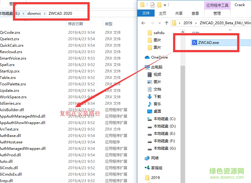 5.打開安裝根目錄,然后把ZWCAD.exe 復(fù)制進去直接替換