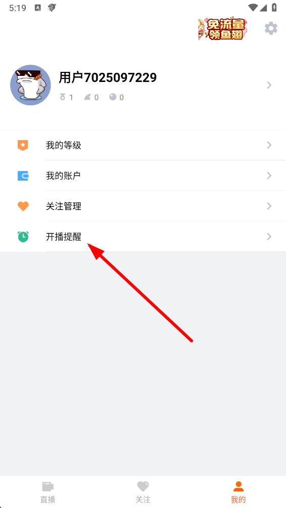2、在進入我的界面后,下滑找到開播提醒選項,點擊該選項進入開播提醒設(shè)置頁面。