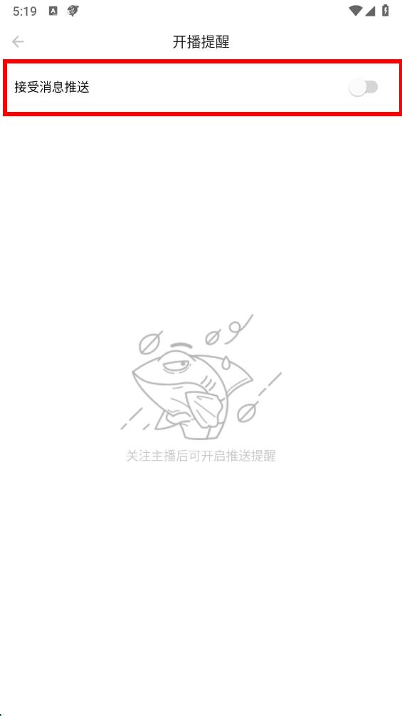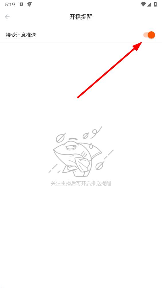 4、點擊接受消息推送開關(guān)按鈕,將其切換至開啟狀態(tài),即可成功設(shè)置開播提醒。