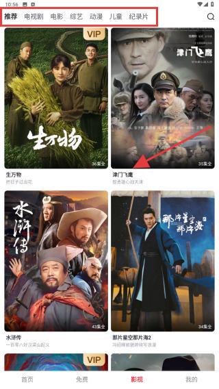 2、進(jìn)入影視頁面后,頂部導(dǎo)航欄會顯示電視劇、電影、綜藝等分類,可點(diǎn)擊一部電視劇內(nèi)容進(jìn)行觀看。